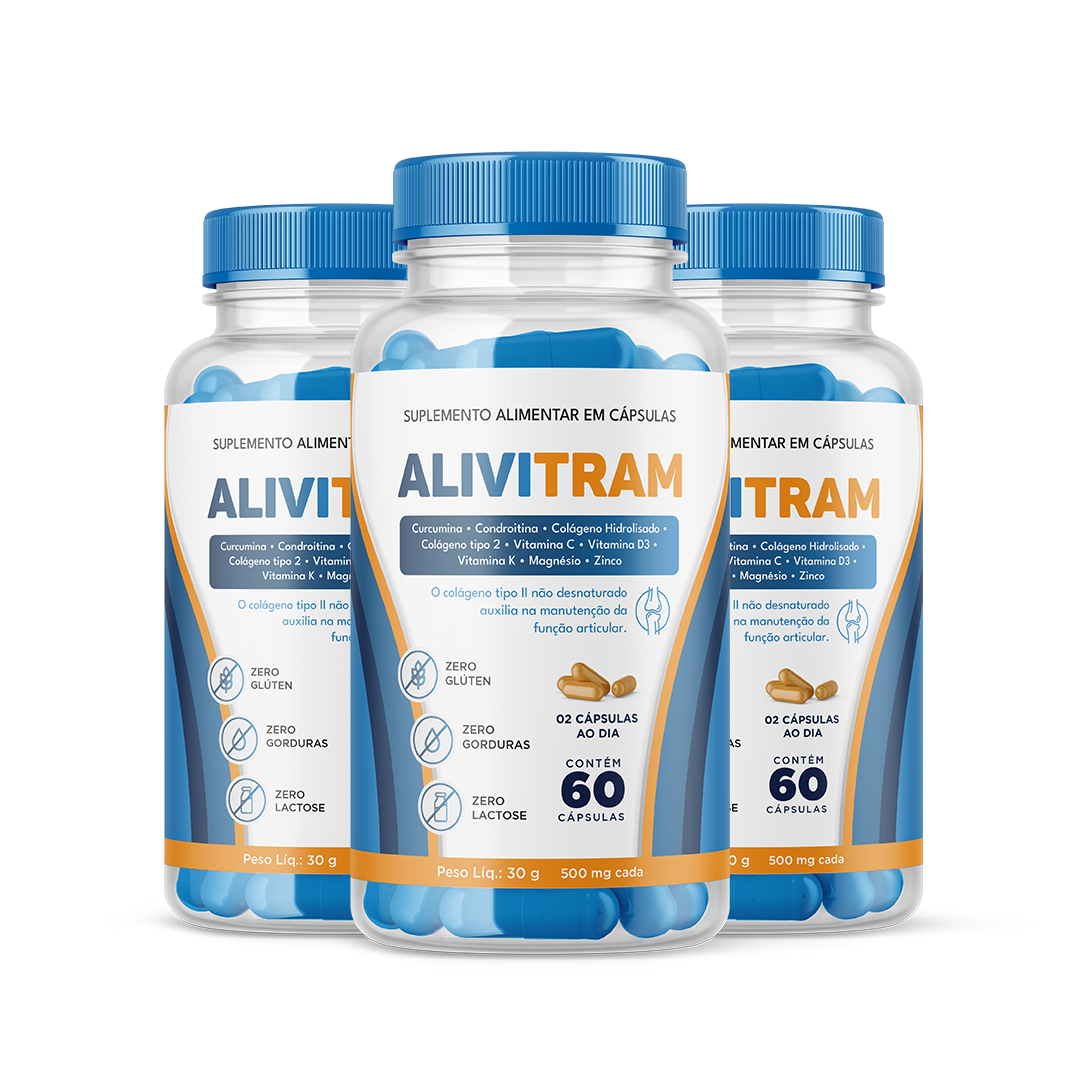 O Alivitram é um produto que alivia as dores articulares. Sua fórmula contém curcumina, condroitina, colágeno hidrolisado, colágeno tipo 2, vitaminas C, D3 e K, magnésio e zinco, que agem diretamente nas articulações, reduzindo a inflamação e proporcionando alívio para a dor.